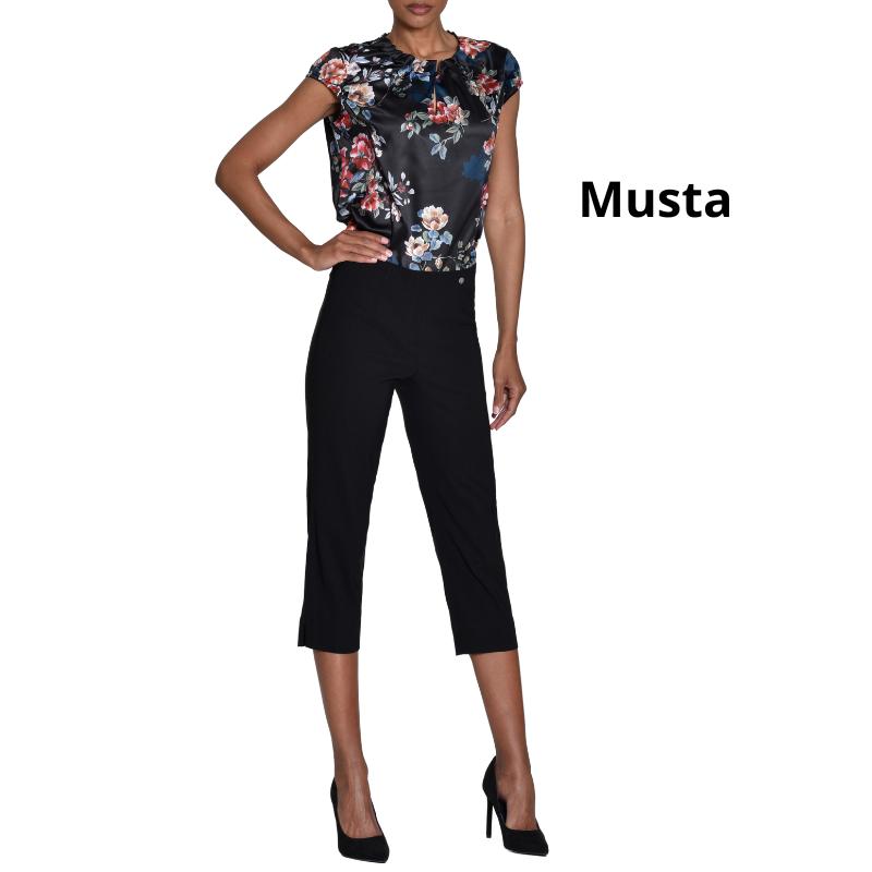 Kapeat lahkeet tuovat modernia ilmettä, ja hieman rypistymätön materiaali tekee housuista helppohoitoiset – ne näyttävät hyvältä vähällä vaivalla. Saatavilla kesäksi 2 pituutta: capri ja 7/8 lahje. Löydät varmasti itsellesi sopivan istuvuuden.