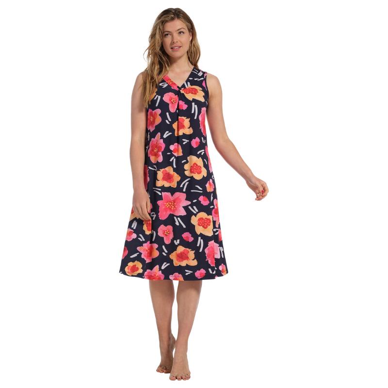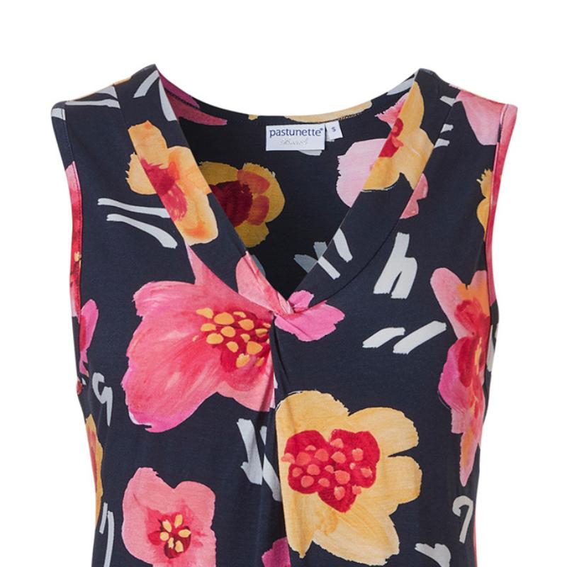 Rennossa hihattomassa trikoomekossa on V-pääntie. Pääntien alareunassa on kiva pieni vastalaskos, joka antaa tilaa rinnalle. . Kauniisti kellottuva helma liikuttaa kauniisti vaatetta ja tuo kaivattua volyymia helmaan. Materiaali on ohut, erittäin miellyttävä iholle.