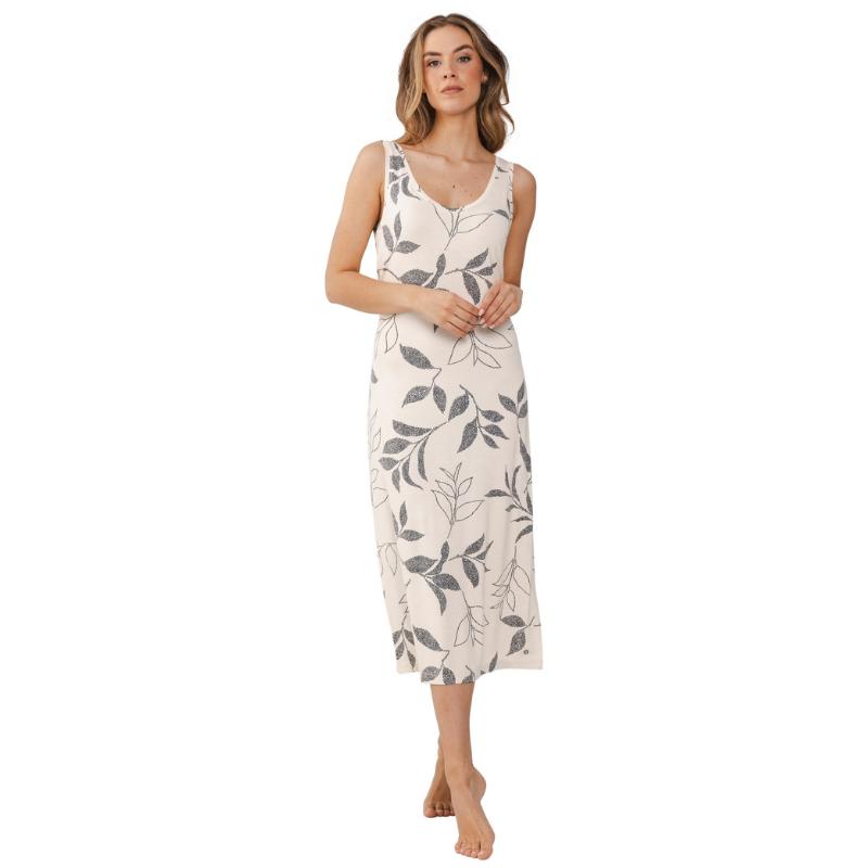 Sen hihaton malli antaa täyden liikkumavapauden ja tekee tästä yöpaidasta täydellisen valinnan lämpimiin öihin tai ympärivuotiseen käyttöön. Hillitty, ajaton kuviointi luonnonvalkoisella pohjalla tuo ripauksen naisellista eleganssia ja harmoniaa yöpukeutumiseen.
