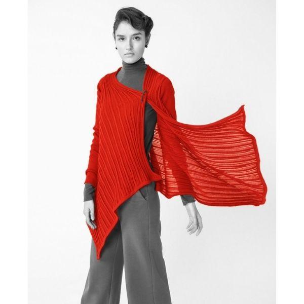 Neule taipuu myös jättiboleroksi, kun takin kääntää 180 astetta eli niska ristiselkään ja helmat kaulukseksi. Näin voit käyttää myös lyhyttä päällystakki neuleesi kanssa.