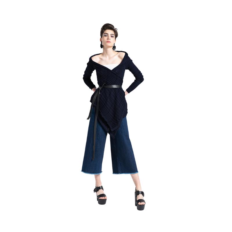 Neule taipuu myös jättiboleroksi, kun takin kääntää 180 astetta eli niska ristiselkään ja helmat kaulukseksi. Näin voit käyttää myös lyhyttä päällystakki neuleesi kanssa.