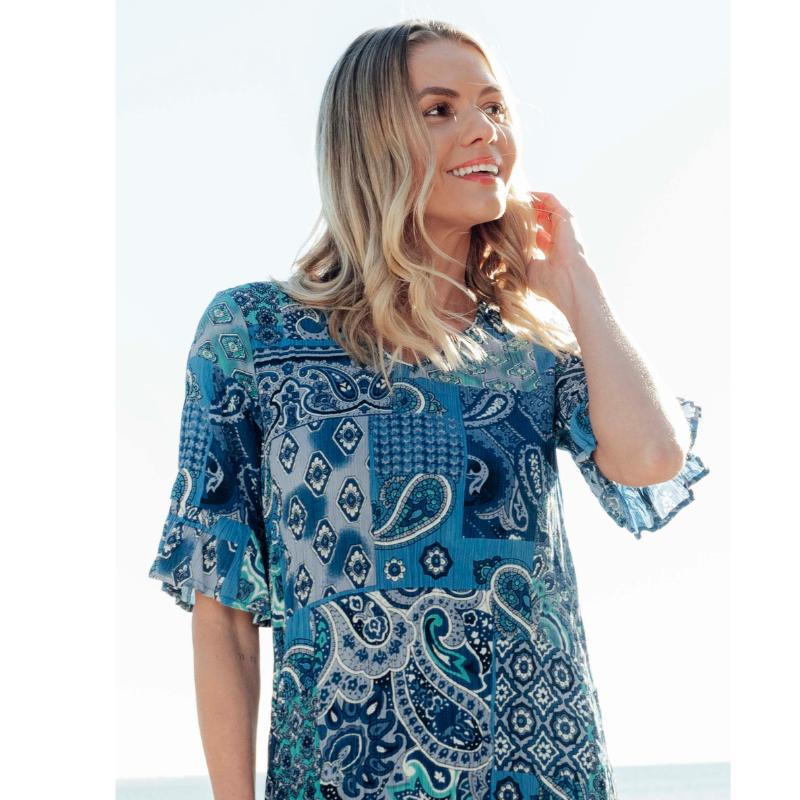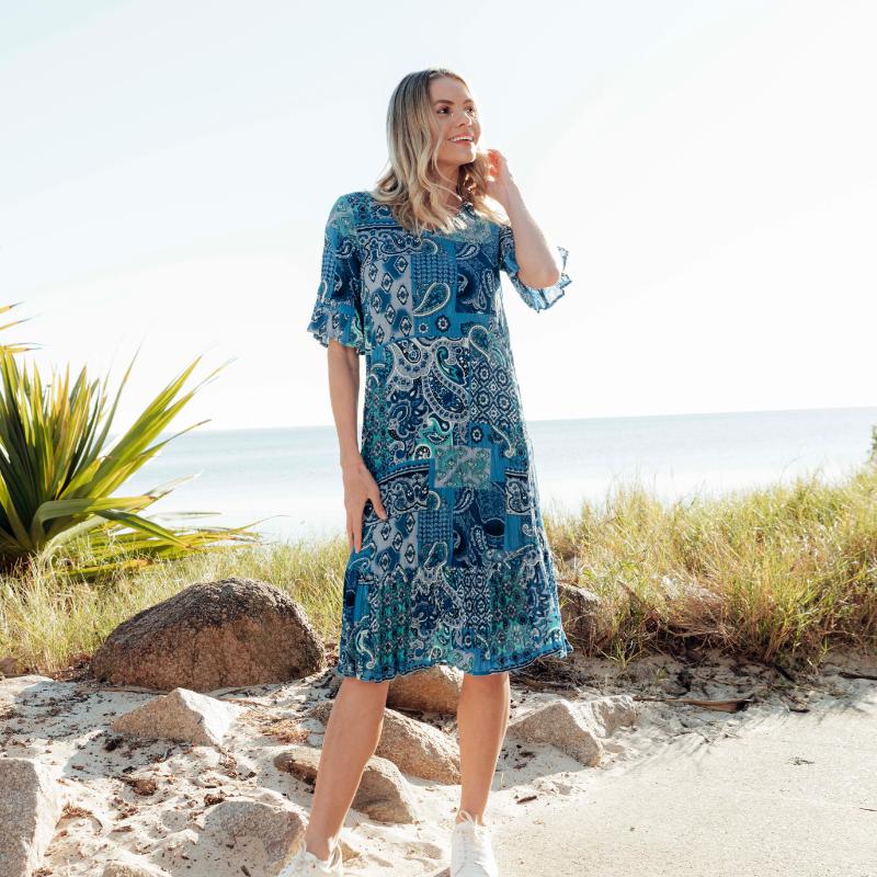Jessica hurmaa ¾-hihoillaan, hienostuneella V-pääntiellään ja kauniilla, katseet vangitsevalla kuosillaan. Kevyt, ilmava ja tyylikäs – tämä mekko on tehty rantakaduille, kesäjuhliin ja lomapäiviin.
