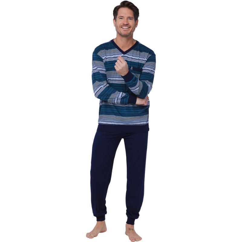 Tämä pyjama on tehty miehille, jotka arvostavat mukavuutta ja käytännöllisyyttä. 100% puuvillatrikoo tuntuu pehmeältä iholla, hengittää hyvin ja pitää olon mukavana läpi yön.