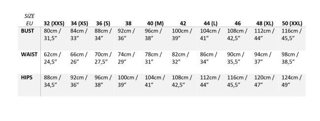 Varmista vielä oikea kokosi mittataulukosta.