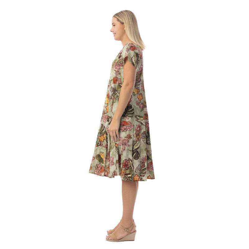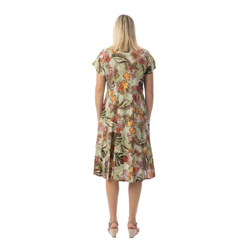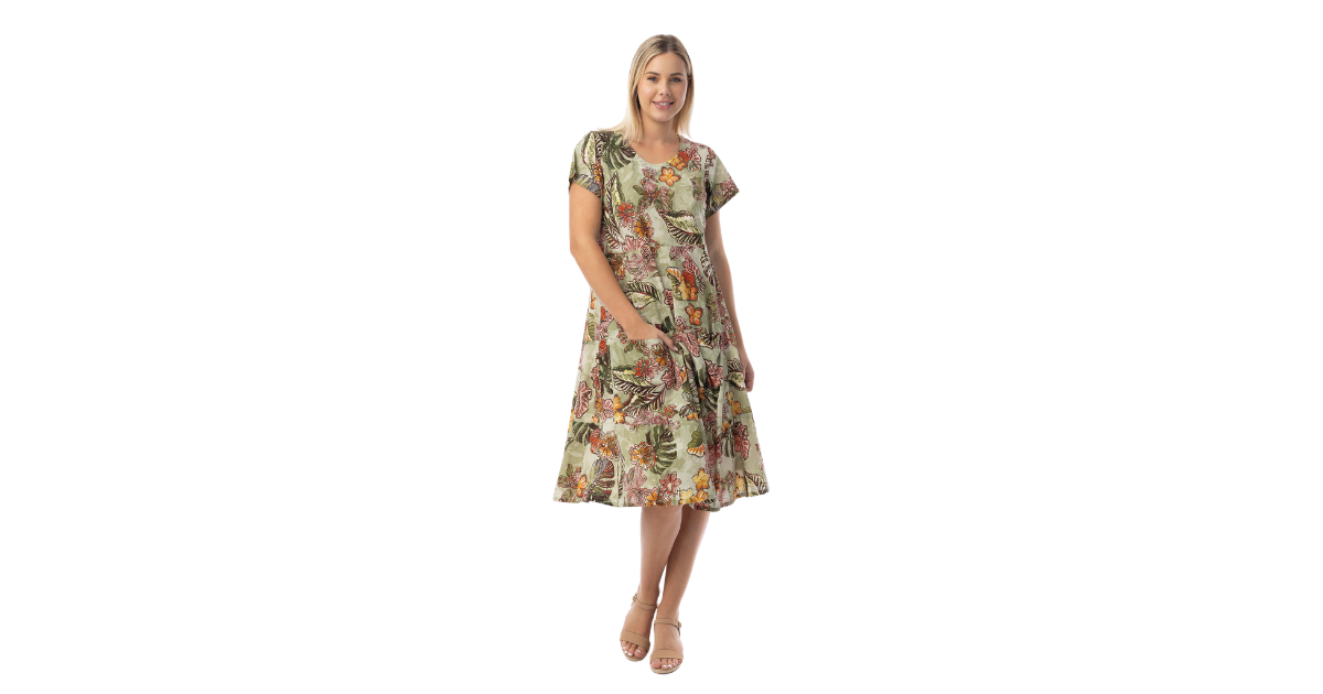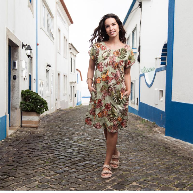 Tämä hurmaava Orientique puuvillamekko yhdistää luonnonläheisen sävymaailman ja ajattoman kukkakuosin. Pehmeän vihertävä pohja ja lämpimät kukkasävyt tekevät tästä naisten kesämekosta elegantin mutta rennon valinnan niin lomalle kuin arjen kesähetkiin.