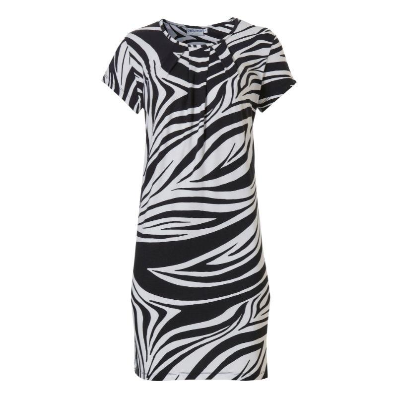 Rennossa trikoomekossa on pyöreäpääntie. Pääntien alareunan laskokset antavat tilaa rinnalle. Lyhyet hihat suojaavat käsivarsia. Tunika, mekko laskeutuu väljästi pääntien laskosten ansiosta. Materiaali on erittäin miellyttävä iholle. Vaate on kesän ja talven rantalomien suosikki helppohoitoisuutensa vuoksi.