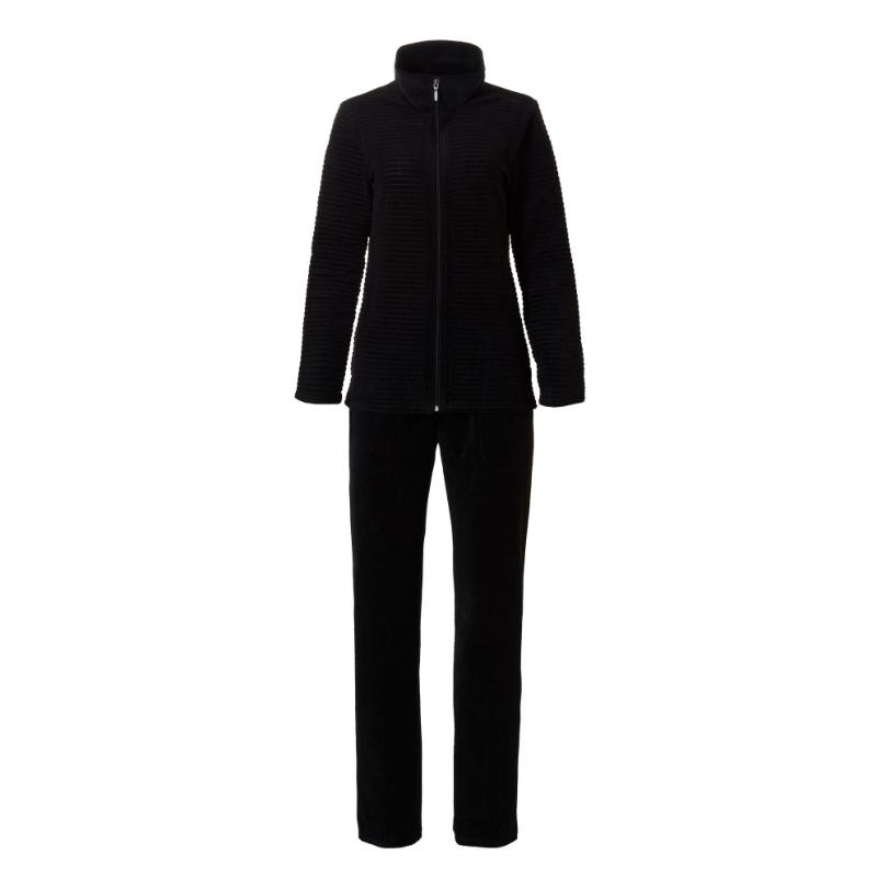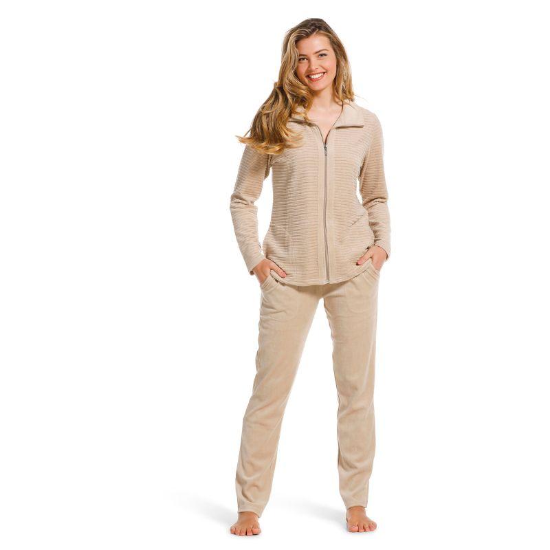 Pastunette Delux malliston helppo oloasu kotoiluun. Housuissa on kivat sivutaskut ja vyötäröllä leveä kuminauha. Oloasun housujen lahje on suora, tarvittaessa siis helppo myös lyhentää. Oloasuin takissa vetoketjukiinnitys ja korkea pääntie, niskojen ja hartioiden suojaksi. Takin hiha on täyspitkä ja suora. Linjastoltaan takki on kevyesti muotoiltu. Oloasu on miellyttävän ohut ja kevyt sekä mukavan pehmoinen iholle.