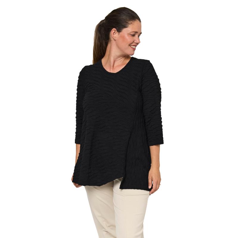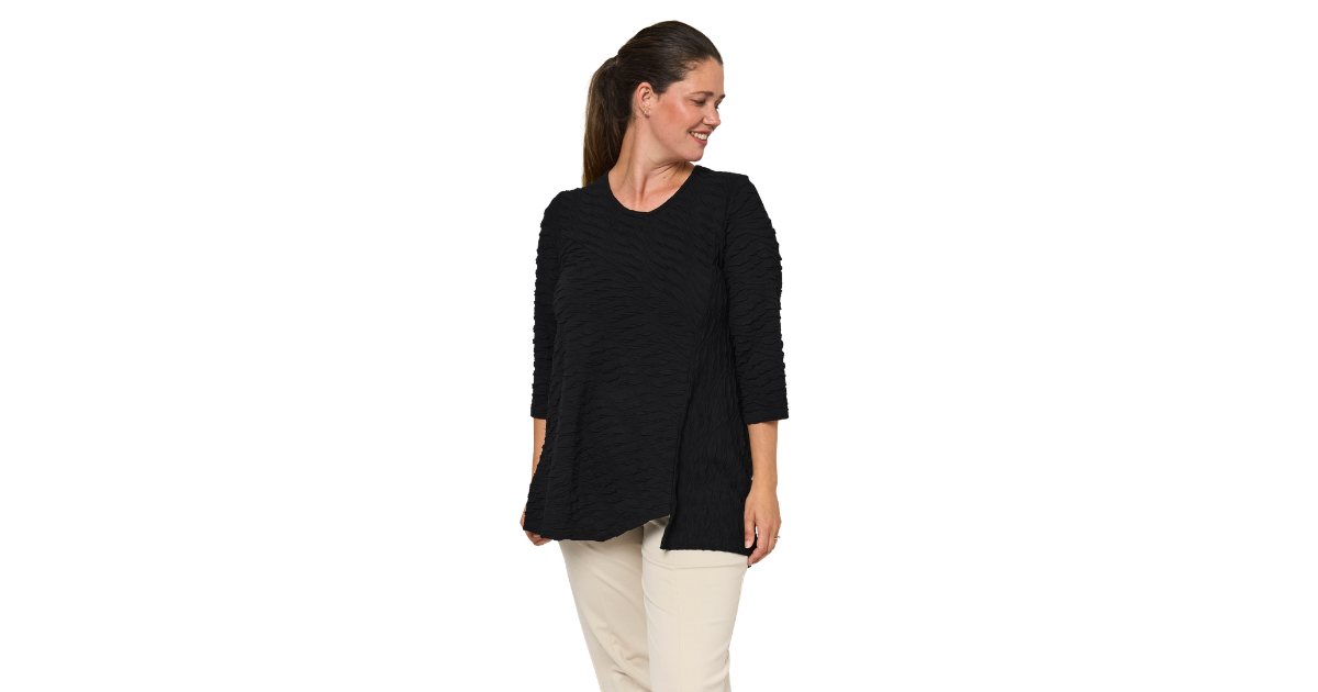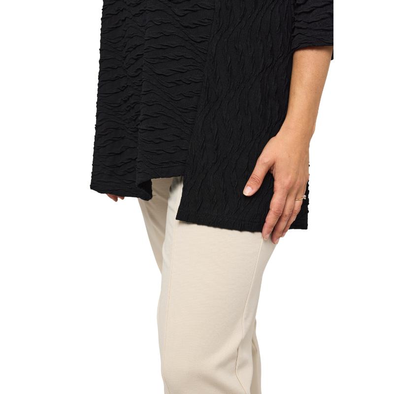 Tämä Pont Neuf -tunika on ajattoman musta vaatekaapin kulmakivi – mutta pienellä twistillä. Kauniisti eläväpintainen materiaali tuo syvyyttä ja kiinnostavuutta muuten klassiseen malliin.
