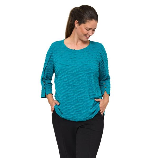 Tämä paita on kuin raikas tuulenvire – kevyt, mukava ja täynnä väriä! Eläväpintainen kangas tuo hauskaa tekstuuria, ja rento malli tekee siitä täydellisen arjen luottovaatteen. Petrolinsininen sävy sopii loistavasti niin farkkujen kuin siistien housujen kanssa.