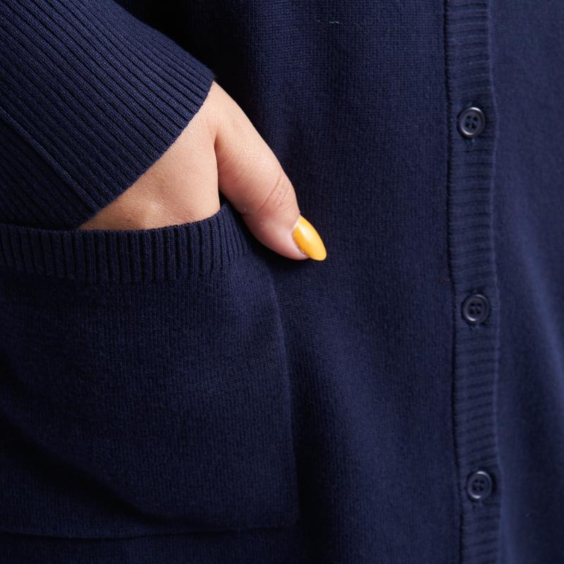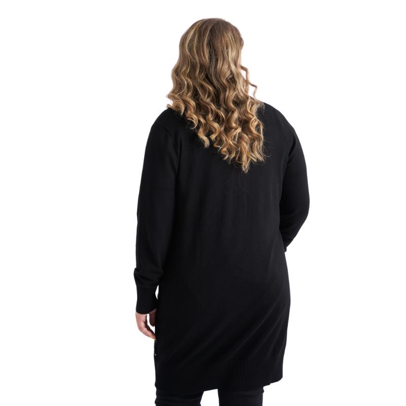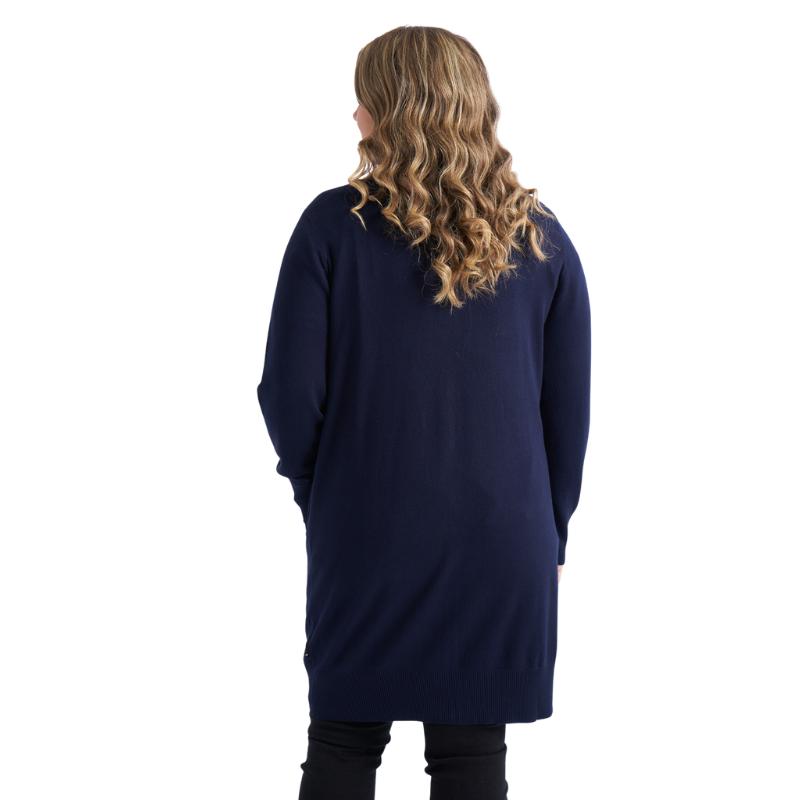 Syverine on pitkä, kauniin yksivärinen neuletakki, joka ihastuttaa ajattomalla tyylillään ja miellyttävällä istuvuudellaan. Siinä on V-pääntie, pitkät hihat, napitus edessä koko matkalta sekä käytännölliset sivutaskut.