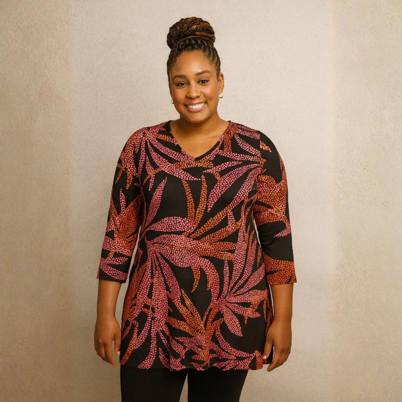 Valitse tämä tunika, kun haluat pukeutua mukavuuden ja värien iloon – pienellä pilkahduksella rohkeutta.