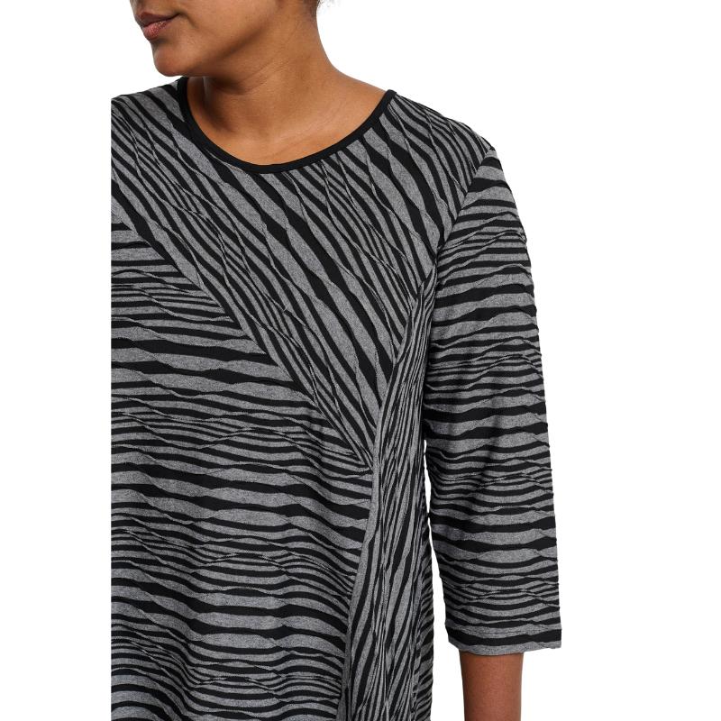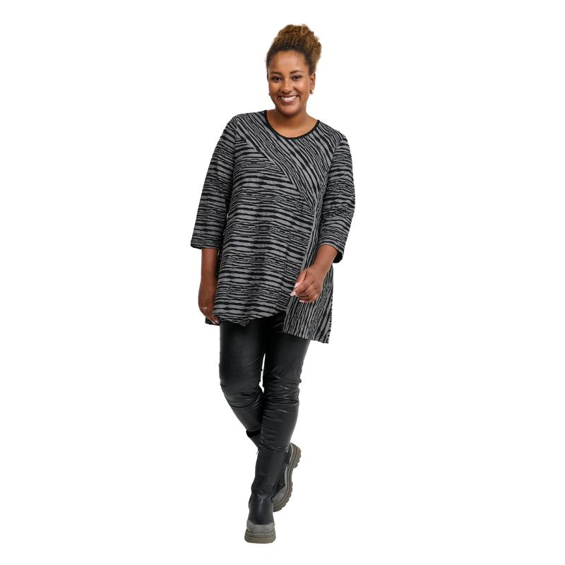 Tässä puserossa on kaikki kohdillaan: mukavuus, tyyli ja ripaus leikkisyyttä! Zebrahenkinen kuvio tekee siitä katseenvangitsijan, mutta ei liian villiä – juuri sopivasti särmää arkeen ja menoon. Väljä A-malli antaa tilaa liikkua ja hengittää, ja pyöristetty helma tuo asuun kivaa rentoutta.
