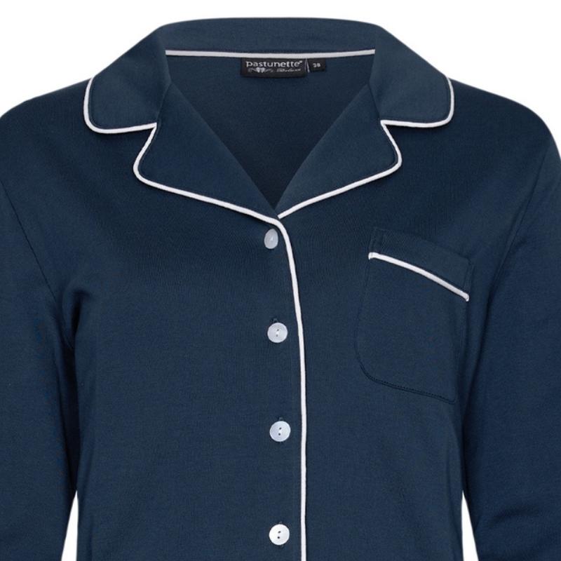 Tämä pyjama on täydellinen valinta rauhallisiin koti-iltoihin tai rentouttavaan yöuneen, jolloin mukavuus ja huoliteltu tyyli ovat avainasemassa.