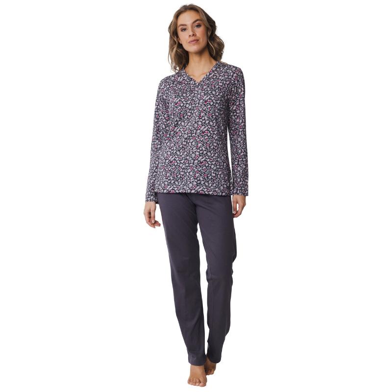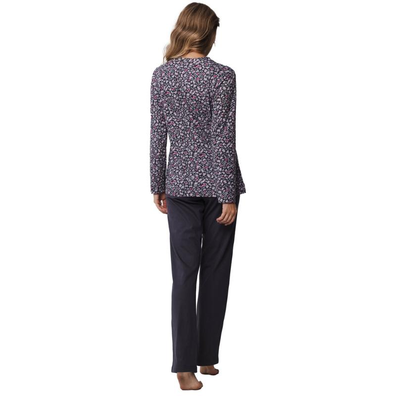 Koe luonnollisen puuvillan ylellisyys tässä pehmeästä ja hengittävästä puuvillatrikoosta valmistetussa pyjamassa. Tämä pyjama yhdistää klassisen mukavuuden ja rennon tyylin, tehden siitä täydellisen valinnan niin rentouttaviin koti-iltoihin kuin levollisiin yöuniin. Puuvillatrikoo tuntuu miellyttävän pehmeältä ihoa vasten ja tarjoaa erinomaisen hengittävyyden, pitäen olosi raikkaana ja mukavana läpi yön. Luonnonmateriaali on hellävarainen iholle ja sopii erinomaisesti ympärivuotiseen käyttöön. Tässä pyjamassa nautit jokaisesta hetkestä!