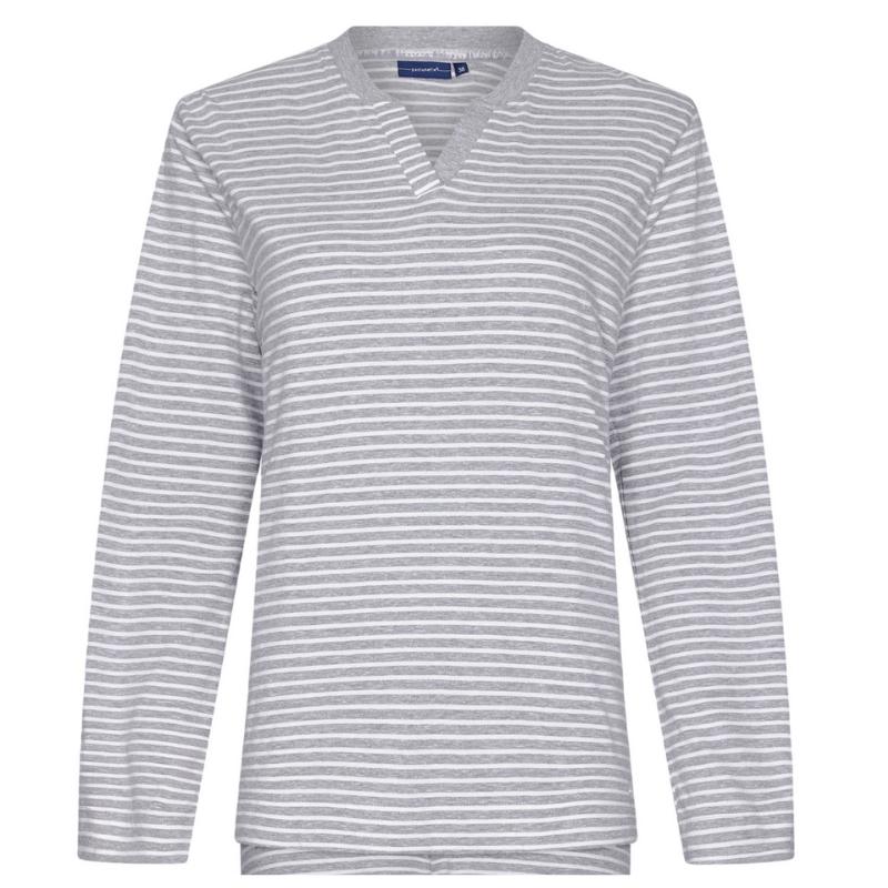 Koe luonnollisen puuvillan ylellisyys tässä pehmeästä ja hengittävästä puuvillatrikoosta valmistetussa pyjamassa. Tämä pyjama yhdistää klassisen mukavuuden ja rennon tyylin, tehden siitä täydellisen valinnan niin rentouttaviin koti-iltoihin kuin levollisiin yöuniin. Puuvillatrikoo tuntuu miellyttävän pehmeältä ihoa vasten ja tarjoaa erinomaisen hengittävyyden, pitäen olosi raikkaana ja mukavana läpi yön. Luonnonmateriaali on hellävarainen iholle ja sopii erinomaisesti ympärivuotiseen käyttöön. Tässä pyjamassa nautit jokaisesta hetkestä!