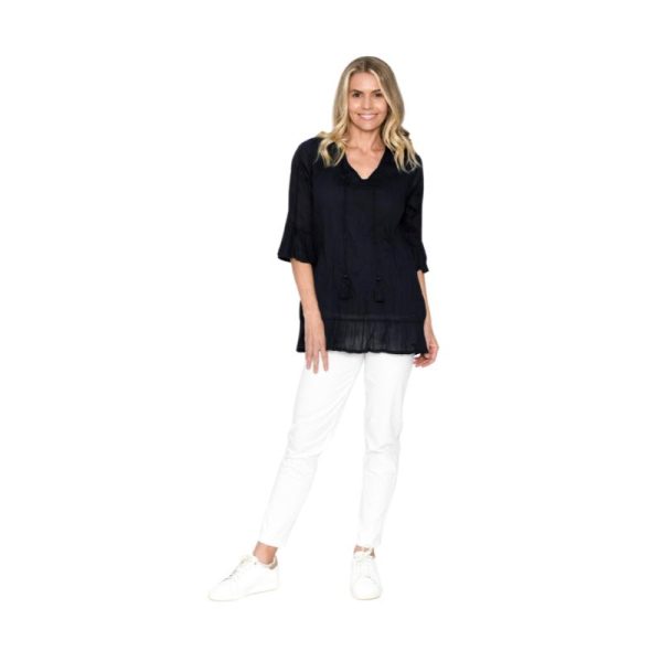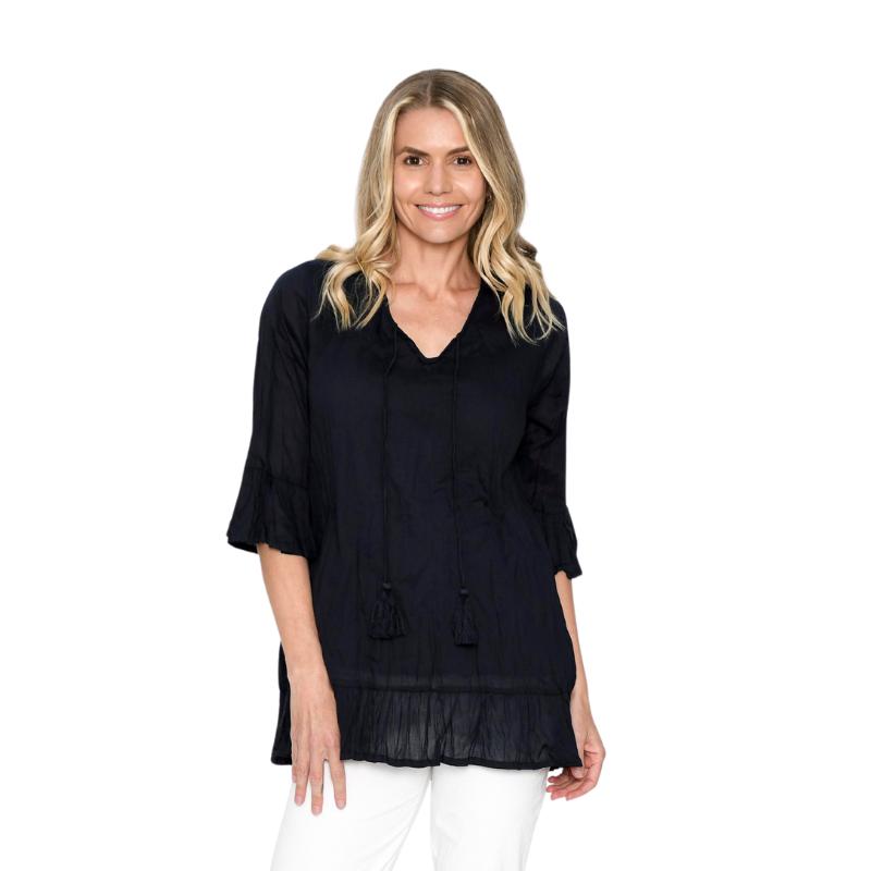 Tämä vuorellinen 100% puuvillasta valmistettu tunika on todellinen vaatekaapin pelastaja. Ilmava, pehmeä ja helppo yhdistää – juuri sitä mitä tarvitset kiireettömiin aamuihin ja rennoille iltakävelyille.