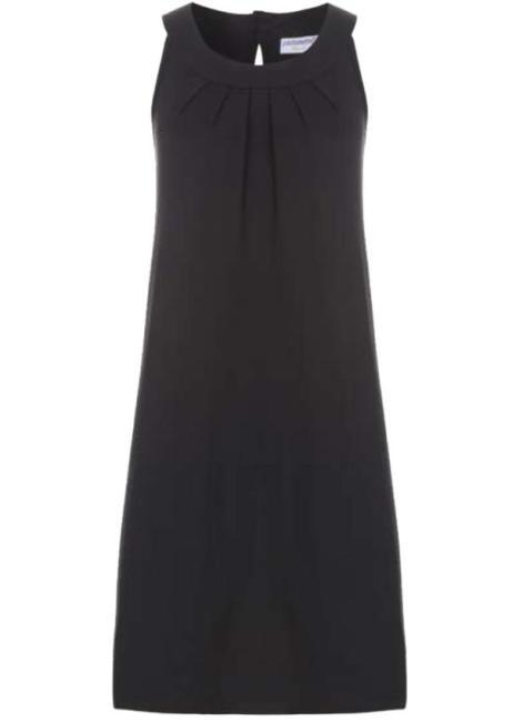 Selkeän, simppelin trikoomekon pääntien kaarella, rinnalle antaa tilaa pienet kivat laskokset. Rantamekoksikin sopiva viskoostrikoomekko on suoralinjainen ja hihaton. Mekon koot vastaavat hyvin suomalaista mitoitusta.